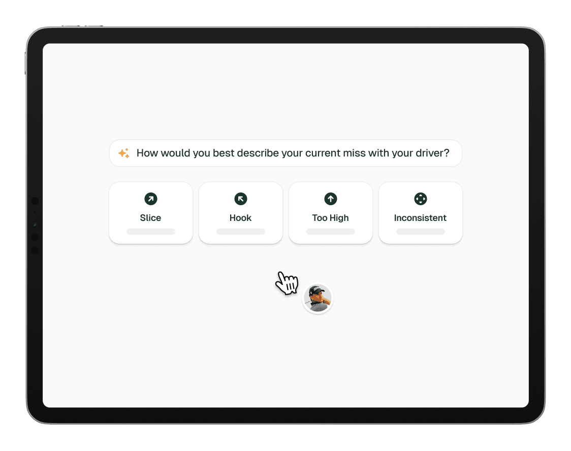 GolferX checks your current inventory to find clubs that fit the customer’s profile, showing only what’s available.